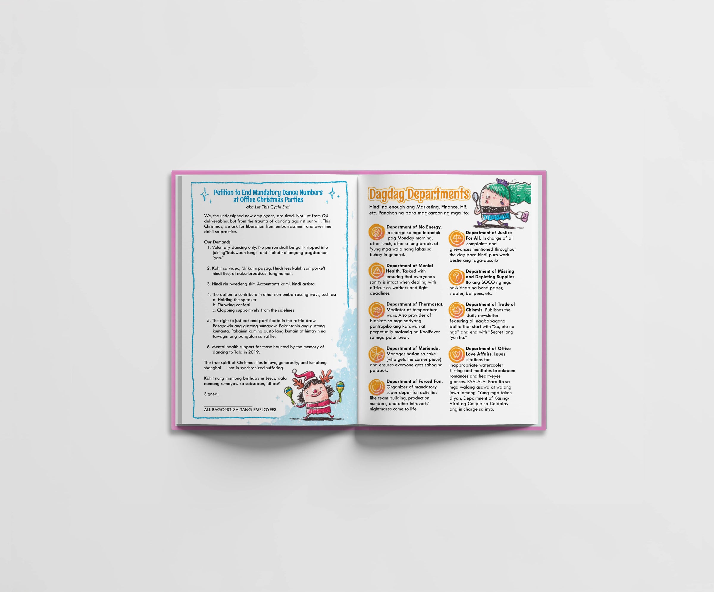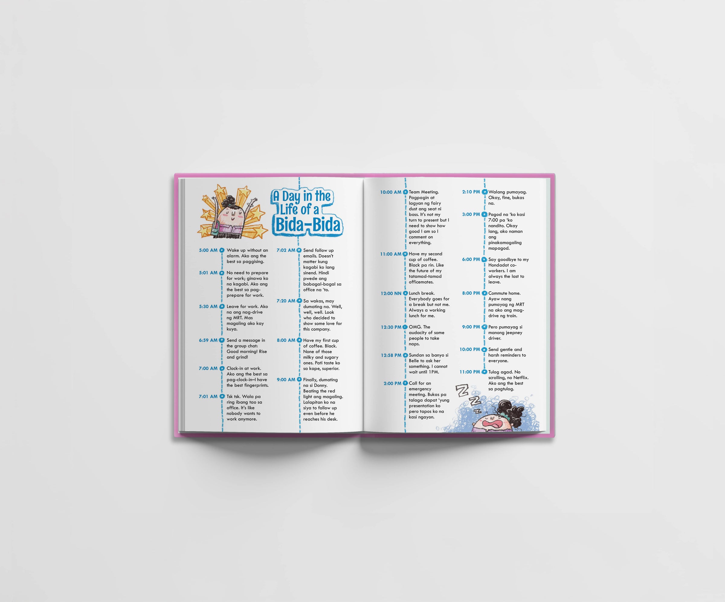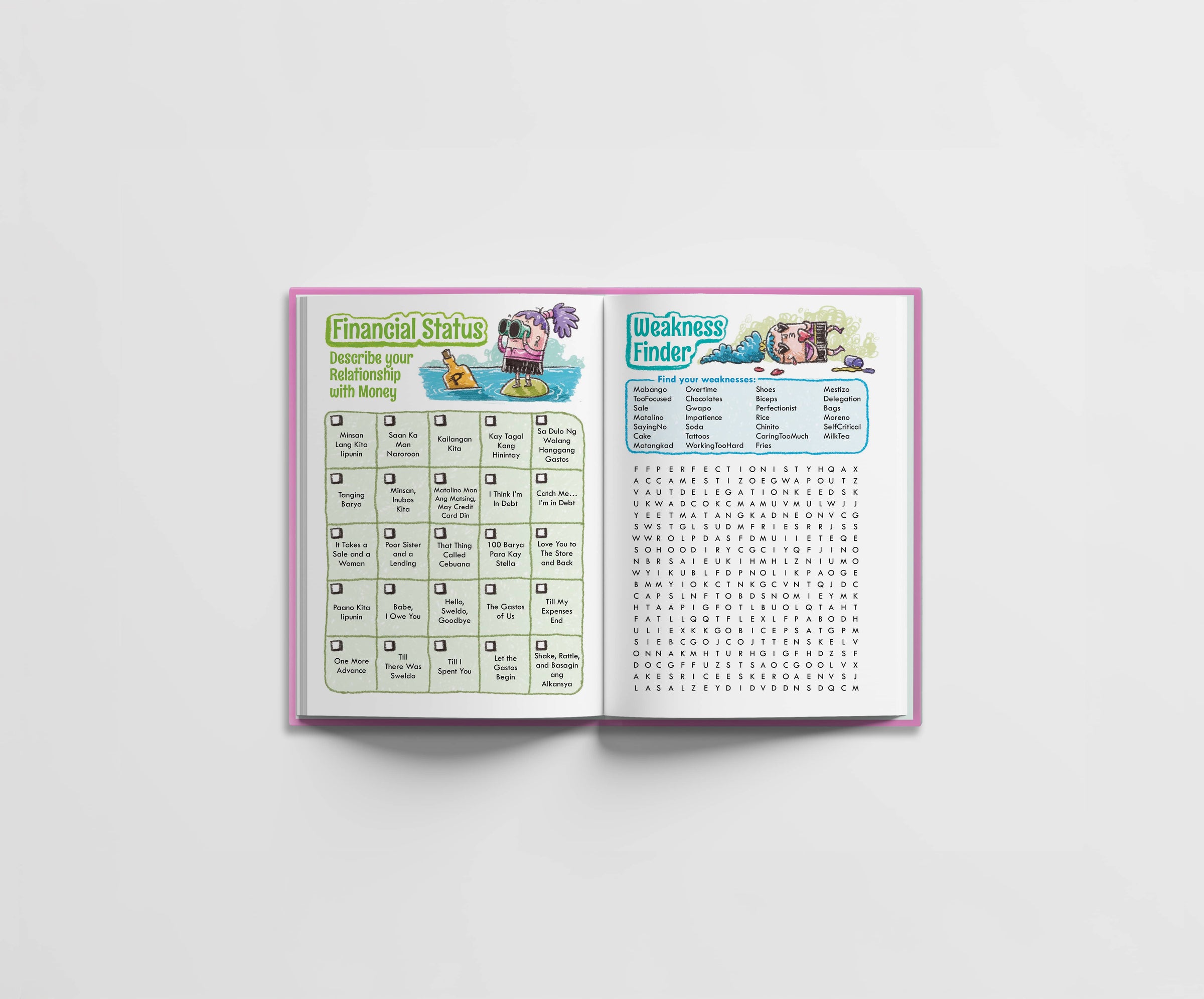 Tita Witty’s first ever product, The “I-was-supposed-to-get-that-coffeehouse-planner-but-I-got-fat-on-the-10th-frappe” Planner 2010 was an unexpected hit and unintentional business venture, making the founders think there was room for witty journals na nagta-Tagalog. Tama naman ang akala nila kaya sinundan nila ito ng ibang paper products gaya ng nostalgic na slumbook, wedding guest book, calendars, notepads, sticky notes, at stickers. Gumawa na rin si Tita Witty ng tote bags, shirts, at storybook. She hopes someday she can produce her own hardware and automotive lines, para maiba naman.